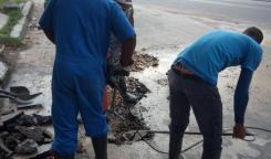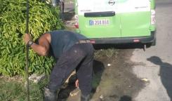 Brigada de la Base Saneamiento Centro trabaja en la reparación de entronque en calle Marina en el