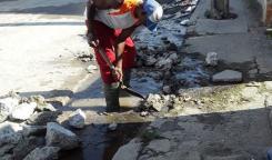 Base de Saneamiento Centro trabaja en la reparación de entronque en calle Santa Marta # 69