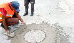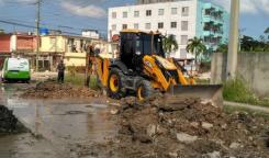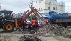 Brigadas de la Base de Saneamiento Oeste mediante el mantenimiento correctivo, repara línea