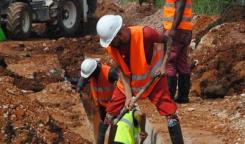 Con el esfuerzo cooperado de los trabajadores de la Base de Saneamiento, avanza la obra de