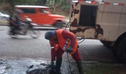 Brigada de la Base de Saneamiento Oeste trabaja con carro de alta presión para minimizar lo