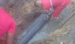 La Base de Acueducto Oeste realiza tape sin asfalto al salidero de agua potable en el tubo