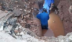 Brigadas de la Base de Grandes Conductoras trabaja en la supresión de salidero de agua pota