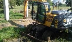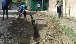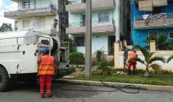 Base de Saneamiento Oeste trabaja con carro de alta presión en calle 27 e/ 26 y 28, Consejo