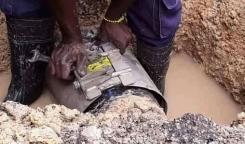 Brigada de la Base de Acueducto del Este, trabaja en la supresión de salidero del tubo de 2