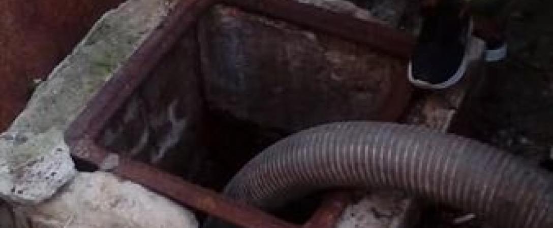 Aguas de La Habana y Saneamiento Básico realizan trabajo conjunto para la limpieza de tanque séptico en calle 4ta/ Mella y Lindero, Consejo Popular Eléctrico, municipio Arroyo.