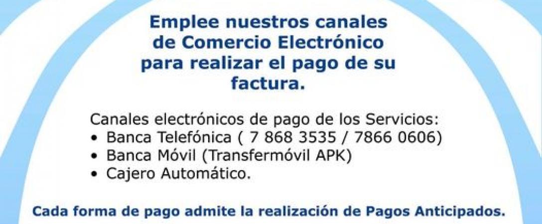 Mediante la aplicación Transfermóvil usted puede pagar y consultar las facturas de los servicios de agua y alcantarillado garantizándole agilidad, comodidad y seguridad en sus operaciones. Para hacer uso de este servicio es necesario poseer un teléfono celular con la aplicación instalada y teclear por única vez su código de cliente. Su empleo no necesita acceso de datos, ni wifi y emite mensajes de texto sin costo alguno en cada operación realizada.