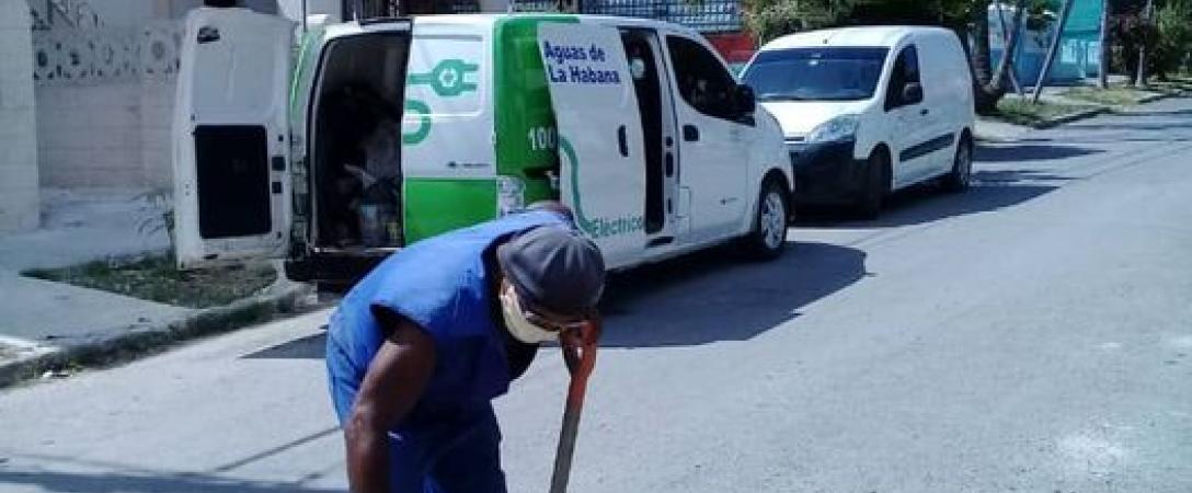 Se trabaja con la brigada de la Base de Acueducto Centro en la supresión de salidero en la acometida ubicada a 1 metro del contén de la calle que afectaba a dos viviendas en el municipio 10 de Octubre.