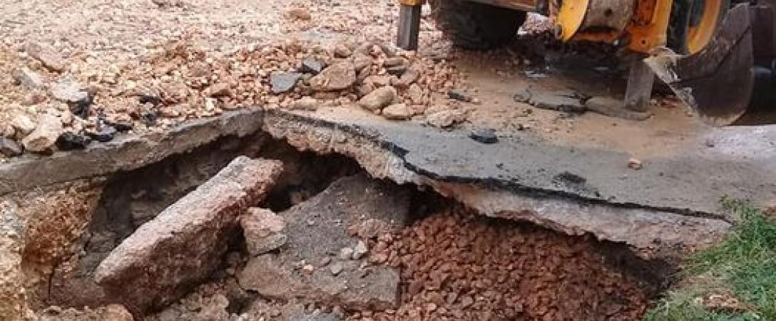 Base de Acueducto Centro realiza los trabajos de supresión de salidero de agua potable, que afectaba el patio de la imprenta Alejo Carpentier en el municipio Cerro.