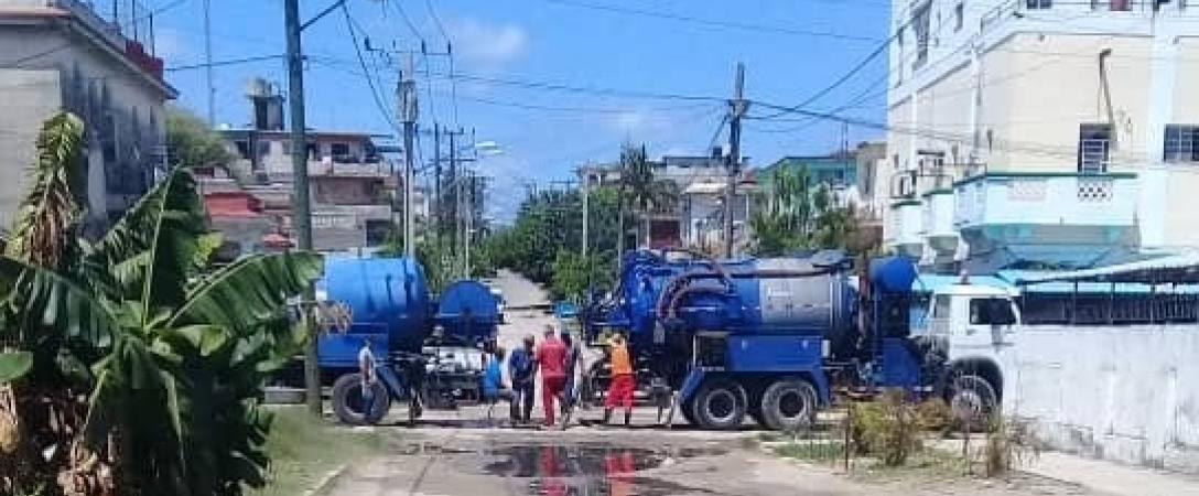 Base de Saneamiento continúa los trabajos de desobstrucción de la línea de alcantarillado de Luis Estévez y Figueroa para eliminar vertimiento de agua albañal, municipio 10 de octubre.
