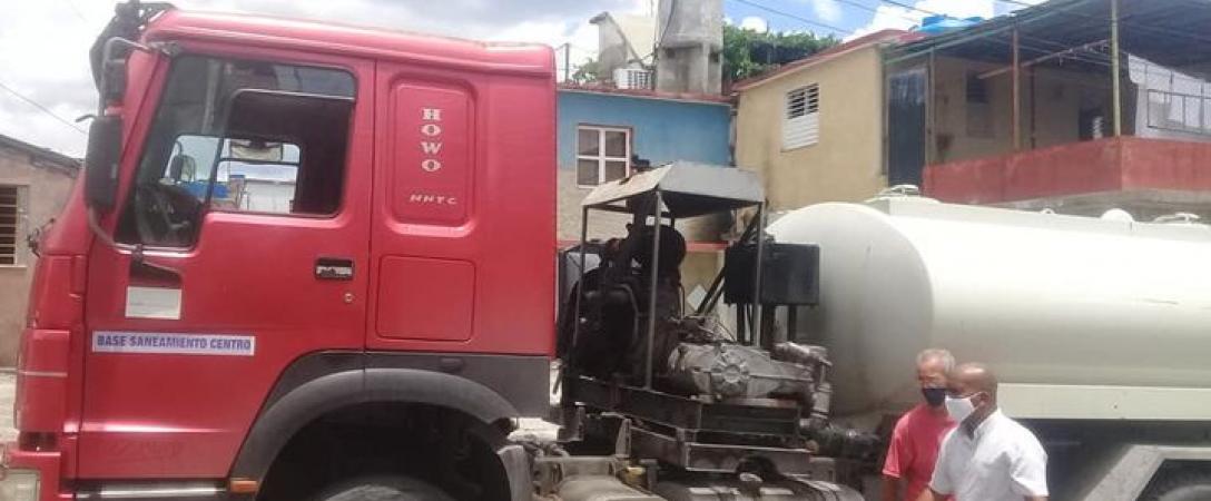 Base de Saneamiento realiza desobstrucción con carro de alta presión en el pasillo de Bellavista # 520 e/ Salvador y Macedonia, Consejo Popular Canal, municipio Cerro.