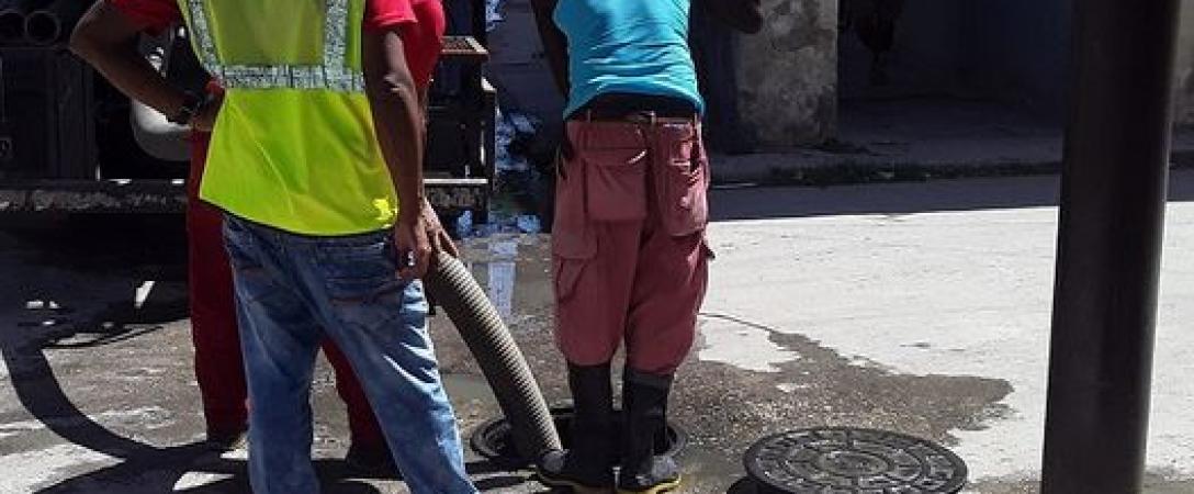 Base de Saneamiento realiza mantenimiento con carro de alta presión en calle Monte y Castillo, Consejo Popular Pilar Atarés, municipio Cerro.