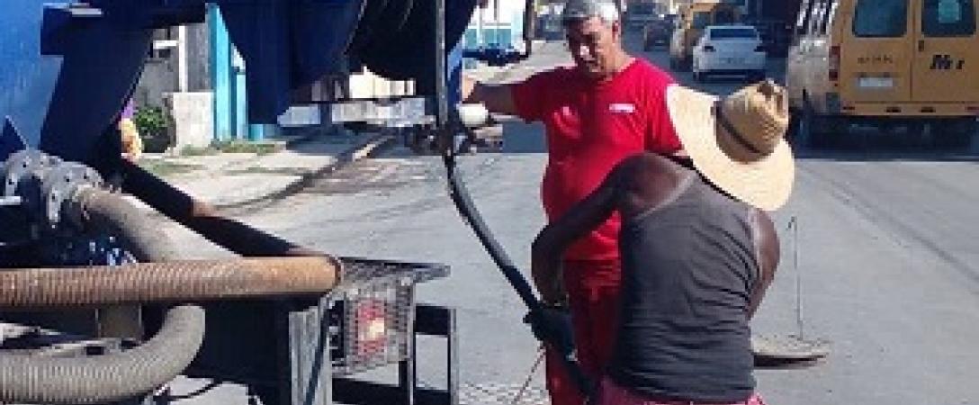 Base de Saneamiento realiza mantenimiento en la linea, con carro de alta presión en Concha e/ Cristina y Calzada de Concha, municipio La Habana Vieja.