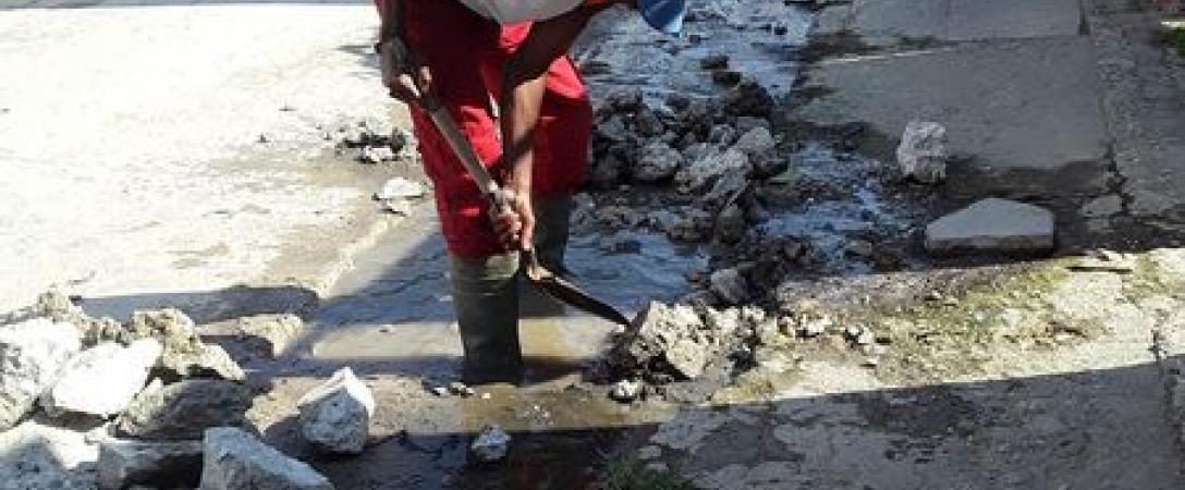 Base de Saneamiento Centro trabaja en la reparación de entronque en calle Santa Marta # 69 en el Consejo Popular Pueblo Nuevo del municipio Centro Habana.