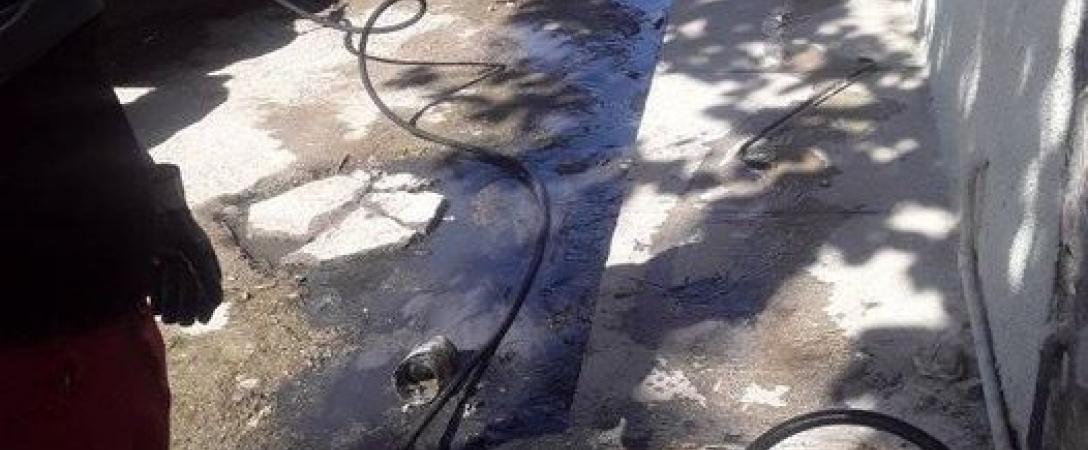 Base de Saneamiento Este elimina vertimiento de agua albañal, con carro de alta presión en calle Perdomo y Línea, municipio Regla.