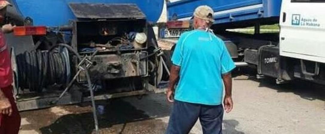 Base de Saneamiento Este realiza trabajos de reparación de línea y vertimiento de agua albañal en calle 417 del Consejo Popular Guanabo, municipio Habana del Este.