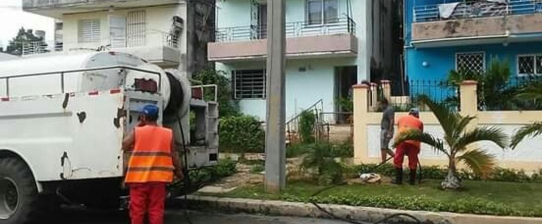 Base de Saneamiento Oeste trabaja con carro de alta presión en calle 27 e/ 26 y 28, Consejo Popular Colón Nuevo Vedado, municipio Plaza.