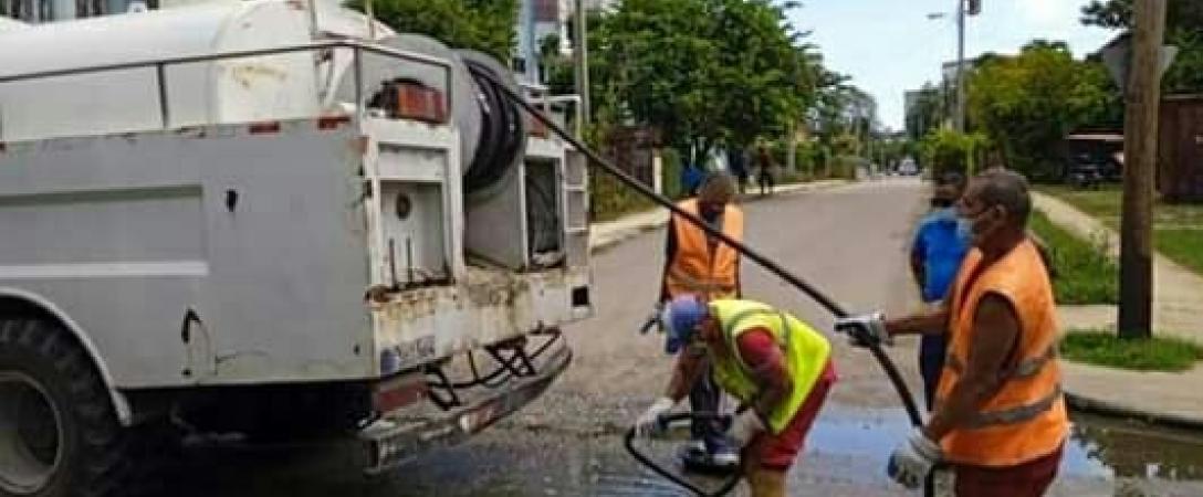 Trabajan de Conjunto Base de Saneamiento Oeste y la Empresa de Saneamiento Básico Habana en el mantenimiento correctivo en la Calle 250, municipio La Lisa.