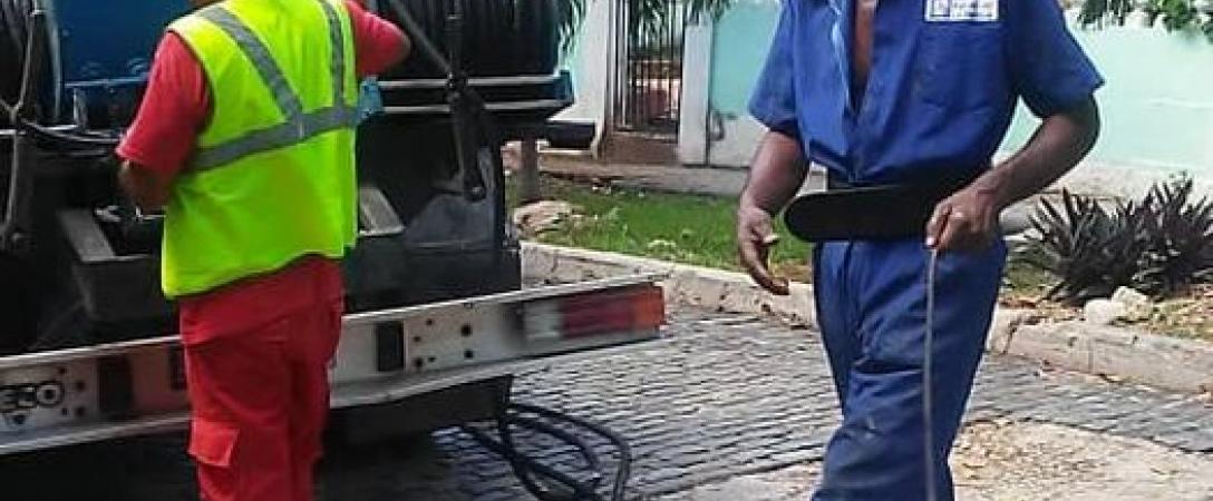 Base Saneamiento Oeste trabaja con carro de alta presión en la calle I e/ 15 y 17, Consejo Popular Rampa, municipio Plaza.
