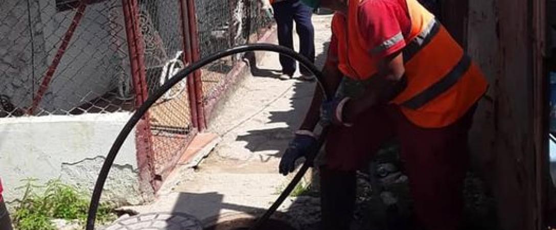 Base Saneamiento Oeste realiza mantenimiento al sistema de drenaje con carro de alta presión y limpia fosa en calle 21 e/ 32 y Final, Consejo Popular Carmelo, municipio Plaza.