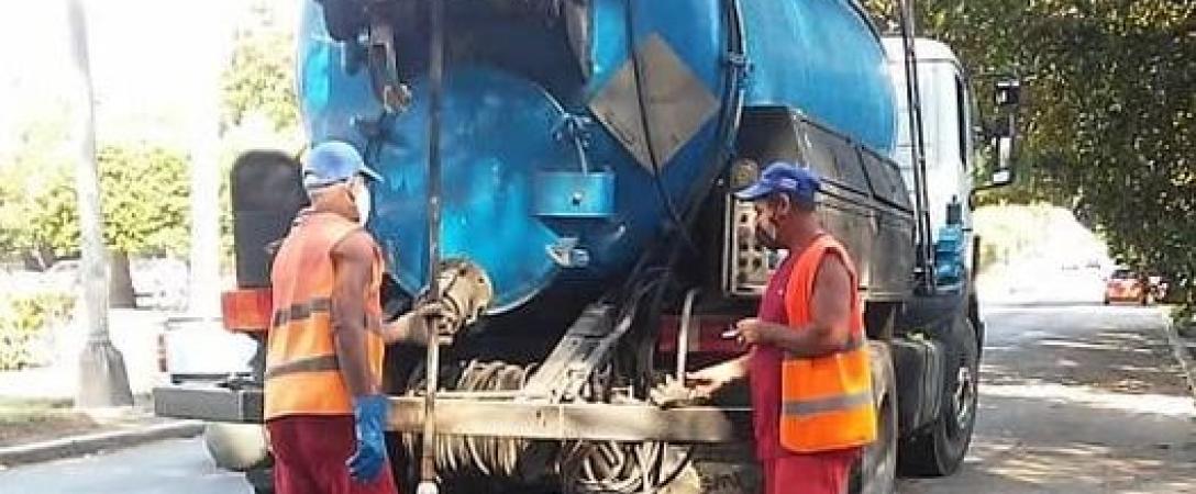 Base Saneamiento Oeste realiza desobstrucción con carro de alta presión en calle G e/ 21 y 23, Consejo Popular Rampa, municipio Plaza.