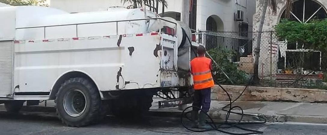 Base Saneamiento Oeste realiza desobstrucción con carro de alta presión en, calle N # 155 e/ 17 y 19, Consejo Popular Rampa, municipio Plaza.