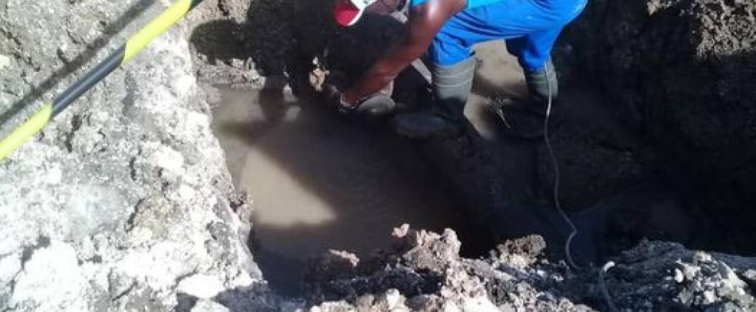 Brigada de Acueducto trabaja en la eliminación de salidero de agua potable en el tubo de 6" en Juan Delgado y Acosta, municipio 10 de octubre.
