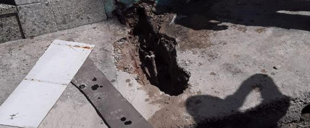 Brigada de Acueducto Este trabaja en la obstrucción de la acometida en calle Céspedes e/. Maceo y Adriano, municipio Regla.