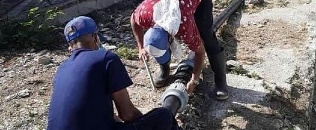 Brigada de Acueducto Este y Operaciones trabajan en la tubería de 160 milímetros que abastece las calles de Loma Fumero , Asunción y Lindero buscando alternativas para mejorar el servicio de agua a los pobladores de esta zona en el municipio Regla.