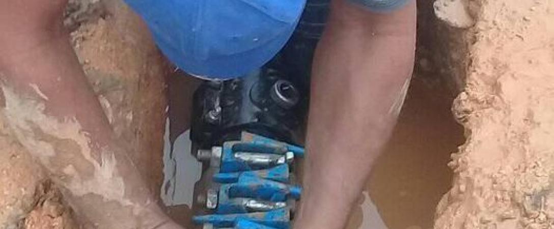 Brigada de Acueducto Sur suprime salidero de agua potable en, Dolores e/ Carretera del Cuervo y Avenida del río, Reparto San Matías, Consejo Popular Dolores Veracruz, municipio San Miguel del Padrón.