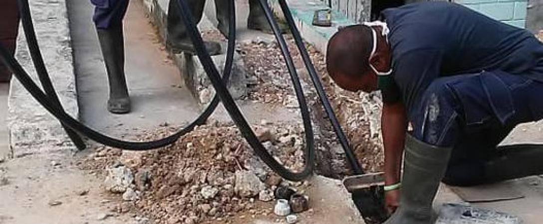 Brigada de la Base Acueducto Centro repara acometida en calle 27 # 1452 e/ 26 y 28, Consejo Popular Colón Nuevo Vedado, municipio Plaza.