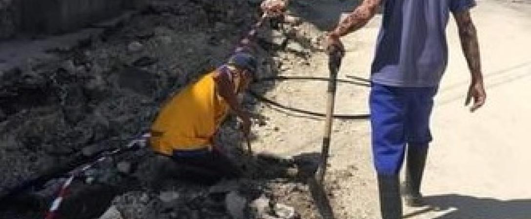 Brigada de la Base Acueducto Este trabaja en la reparación de acometidas en calle Perdomo y Tejedor, municipio Regla