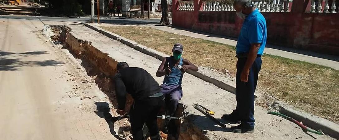 Brigada de la Base Acueducto Oeste trabaja en calle 4 e/ 17 y 19 en el Consejo Popular Vedado del municipio Plaza de La Revolución.