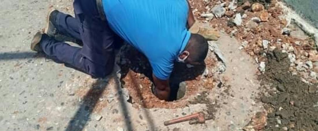 Brigada de la Base de Acueducto realiza trabajo de mantenimiento a las válvulas en calle 156 esq 51,Consejo Popular Versalle La Coronela, municipio La Lisa.
