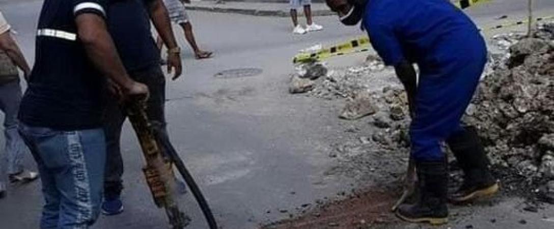 Brigada de la Base de Acueducto Centro realiza trabajos en la calle Soledad esquina San José, Consejo Popular Cayo Hueso, municipio Centro Habana.