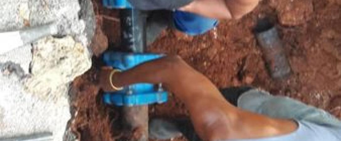 Brigada de la Base de Acueducto Centro trabaja en la supresión de salidero en el conducto de 4 pulgadas de diámetro, en calle D entre Línea y 11 en el Consejo Popular Vedado Malecón, municipio Plaza de la Revolución.