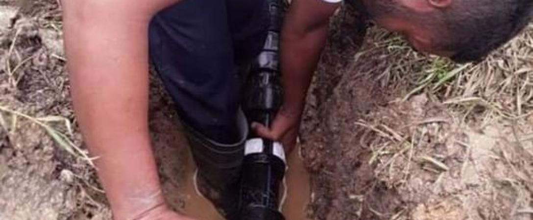 Brigada de la Base de Acueducto del Este, trabaja en supresión de salidero en calle 20 entre 100 y 129, Consejo Popular San Pedro, municipio Cotorro.