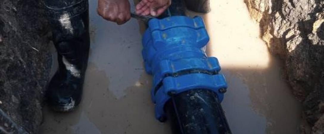 Brigada de la Base de Acueducto del Este se suprime salidero en calle 20, Consejo Popular Santa María del Rosario, municipio Cotorro.
