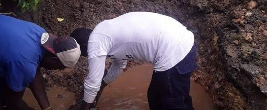 Brigada de la Base de Acueducto del Este suprime salidero en el Consejo Popular Lotería en calle 97a, municipio Cotorro.