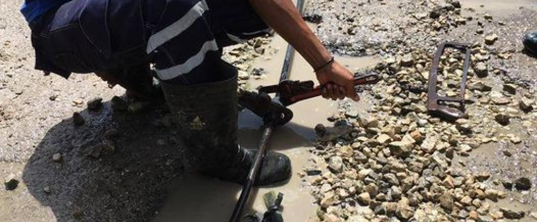 Brigada de la Base de Acueducto Este trabaja en la supresión de salideros de agua potable en, calle 71 e/ 20 y 22, Consejo Popular Magdalena Torriente, municipio Cotorro.