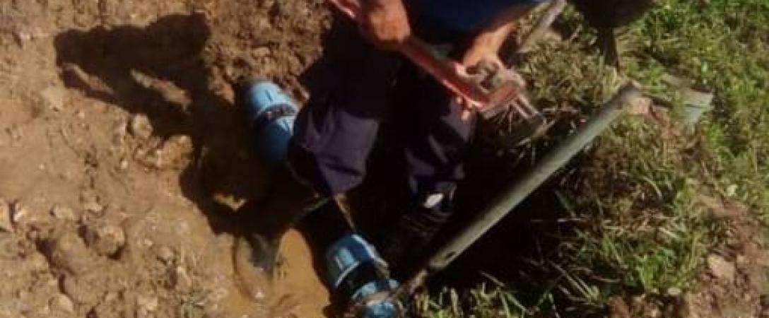 Brigada de la Base de Acueducto Este, trabaja en supresión de salidero en calle Ojo de Agua y 1er Anillo, Consejo Popular San Pedro, municipio Cotorro.