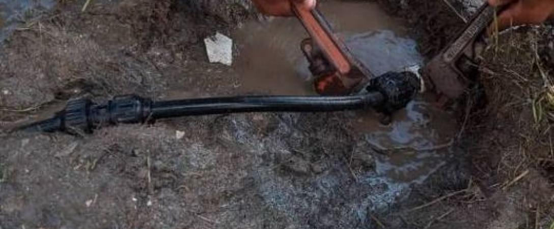 Brigada de la Base de Acueducto Este, trabaja en supresión de salidero en calle 129 y 36, Consejo Popular Magdalena Torriente, municipio Cotorro.