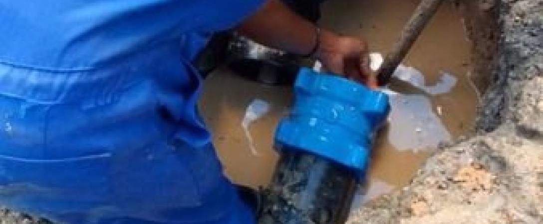 Brigada de la Base de Acueducto Este, trabaja en la supresión de salidero en calle 35 y Final, en el Consejo Popular Santa María del Rosario del municipio Cotorro.