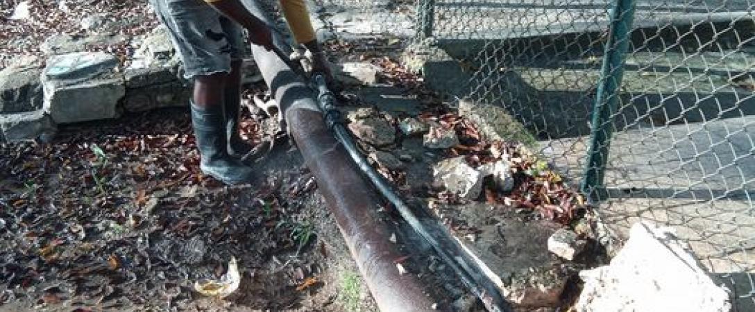 Brigada de la Base de Acueducto Este, trabaja en la supresión de salidero en calle 101 entre 36 y 38 en el Consejo Popular Magdalena Torriente del municipio Cotorro.