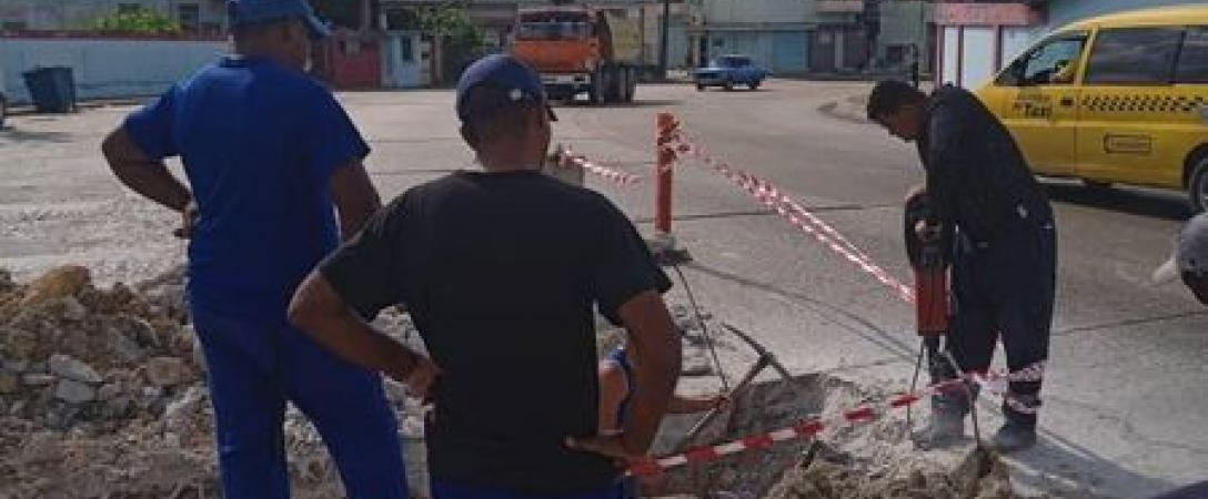 Brigada de la Base de Acueducto Oeste trabaja en la supresión de salideros en el Municipio Playa.