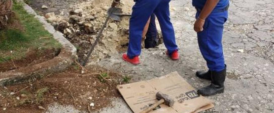 Brigada de la Base de Acueducto Oeste trabaja en la reparación de acometida en calle 64 No 3304 entre 33 y 41 en el Consejo Popular Ceiba Kolhy del municipio Playa.