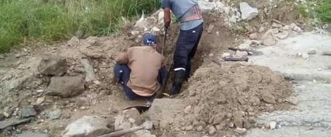 Brigada de la Base de Acueducto Sur realiza trabajos de supresión de salideros en la calle Cisneros, Consejo Popular Párraga, municipio Arroyo.