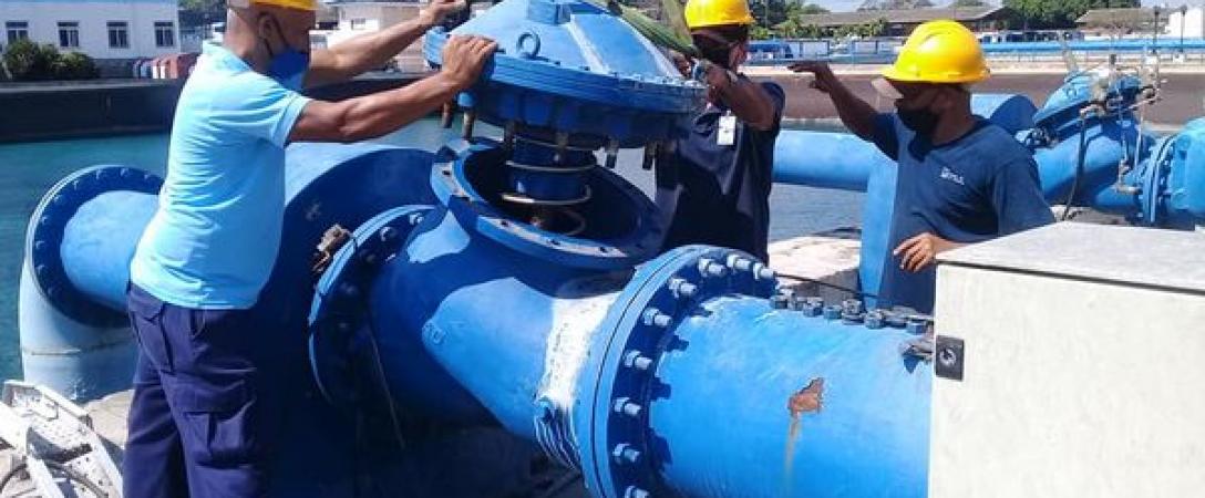 Brigada de la Base de Electromecánica ejecuta la puesta en marcha del grupo sumergible de la posición 3 de la Estación de Bombeo "Palatino 2".