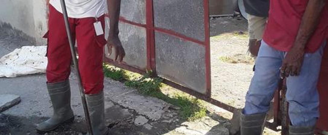 Brigada de la Base de Saneamiento Centro trabaja en la reparación de entronque en calle Santa Marta # 68 en el Consejo Popular Pueblo Nuevo del municipio Centro Habana.