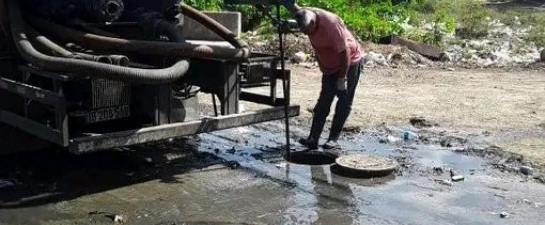 Brigada de la Base de Saneamiento Centro trabaja con carro de alta presión en la desosbtrucción de la línea de alcantarillado en el Consejo Popular Párraga del municipio Arroyo Naranjo.